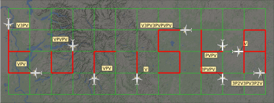 Všimli jste si polohy letadel a prozkoumali popisky? Na první pohled by mělo být zřejmé, že jsou letadla, přesněji špičky jejich trupů, umístěná pouze ve třech linkách a ani vzdálenosti mezi nimi nejsou náhodné - ta nejbližší jsou vždy stejně daleko, svisle i vodorovně. Ano, jsou umístěná na čtvercovém rastru.